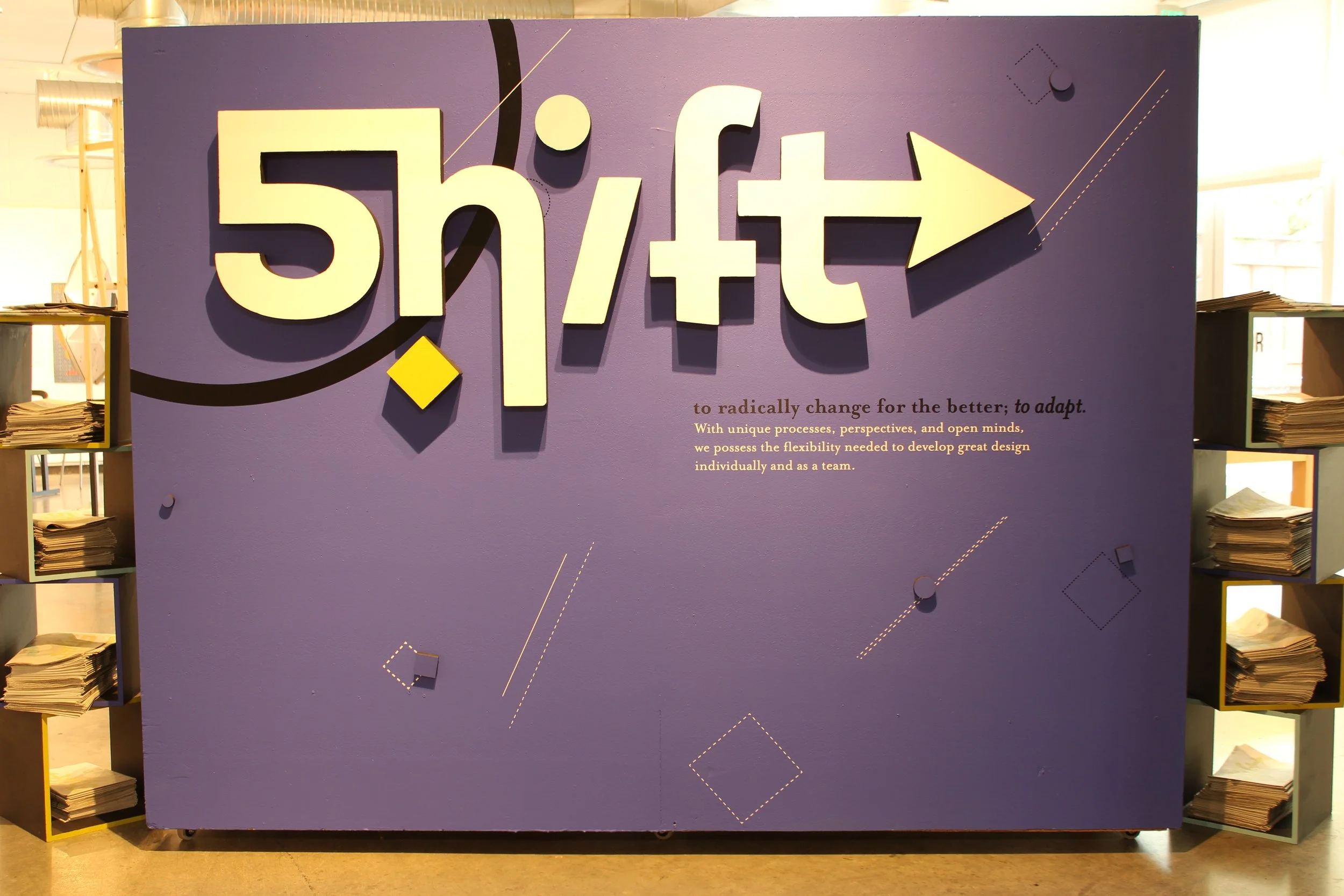 Shift Show was a team project in 2017. My role for this project was to design the title wall. I worked with many designers building the brand attributes. Below you will see my proposal for the show’s title wall.